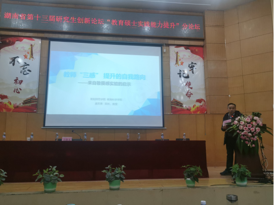 12月15日下午,湖南省第十三届研究生创新论坛“教育硕士实践能力提升”分论坛在湖南理工学院举行。此次论坛由湖南省人民政府学位办、湖南省教育厅主办,由湖南理工学院承办。来自全省的近200名硕士研究生参加论坛。我校教育硕士心理健康教育专业负责人唐芳贵院长应邀出席并作专题报告。