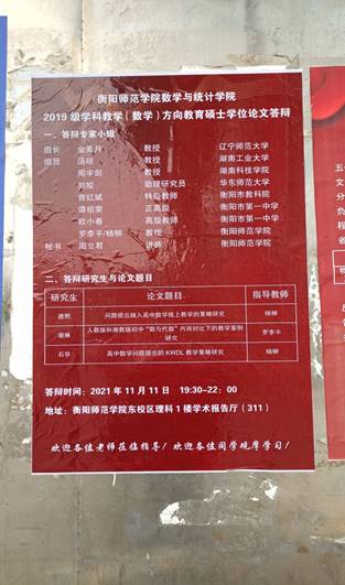 数学与统计学院2019级学科教学(数学)专业硕士学位论文答辩会?